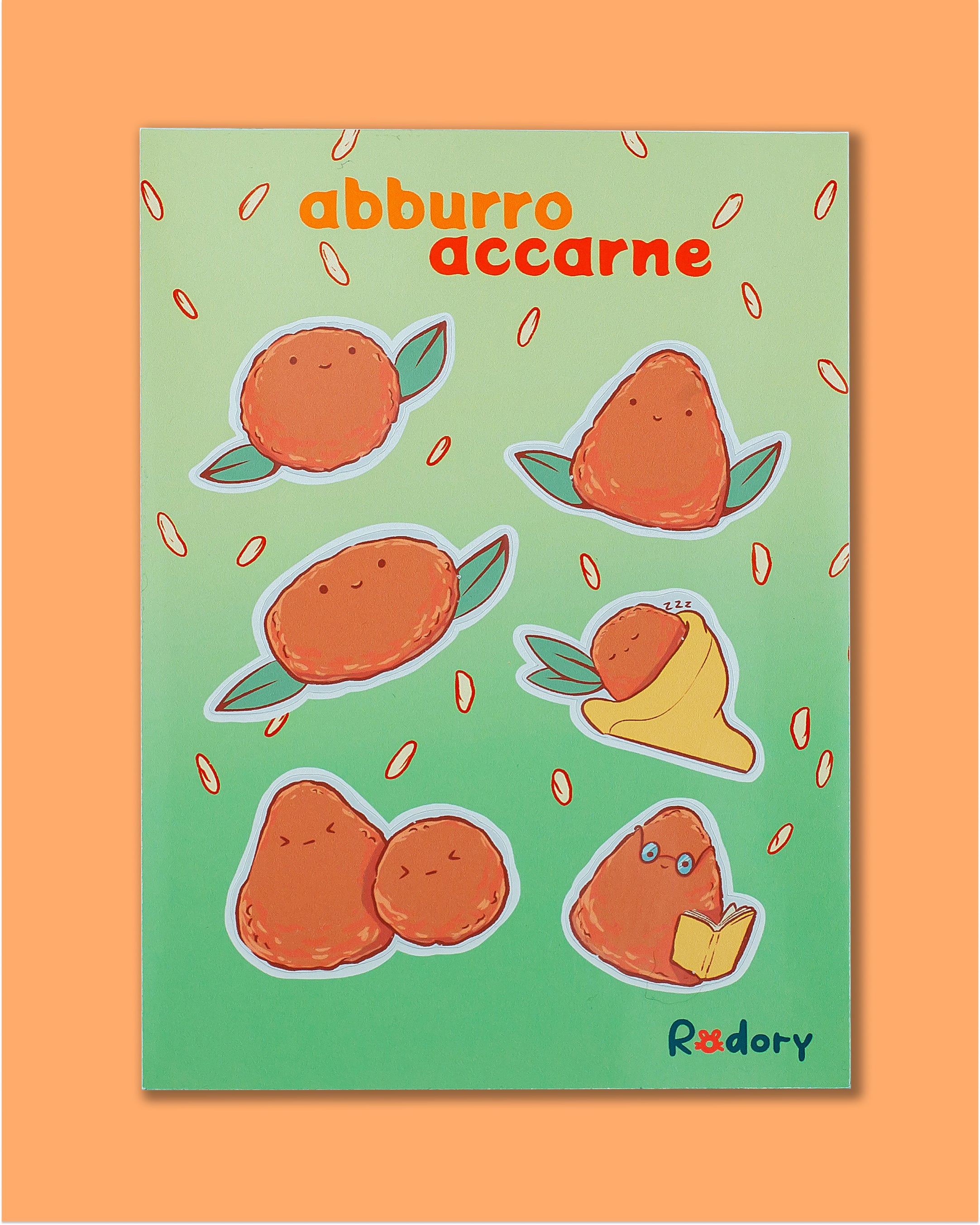 Abburro e Accarne sono le due arancine/arancini più carine/i di sempre! Non importa se usi il maschile o il femminile, perché questo bundle di adesivi kawaii e portachiavi celebrano entrambi i classici della cucina siciliana in una versione irresistibilmente adorabile! Perfetti per decorare agende, diari, laptop, borse e tutto ciò che ha bisogno di un tocco di sicilianità… e di gusto!