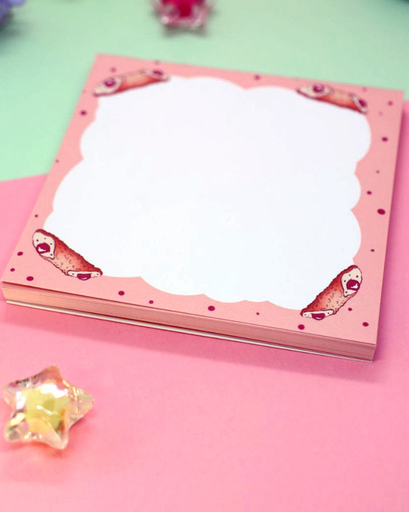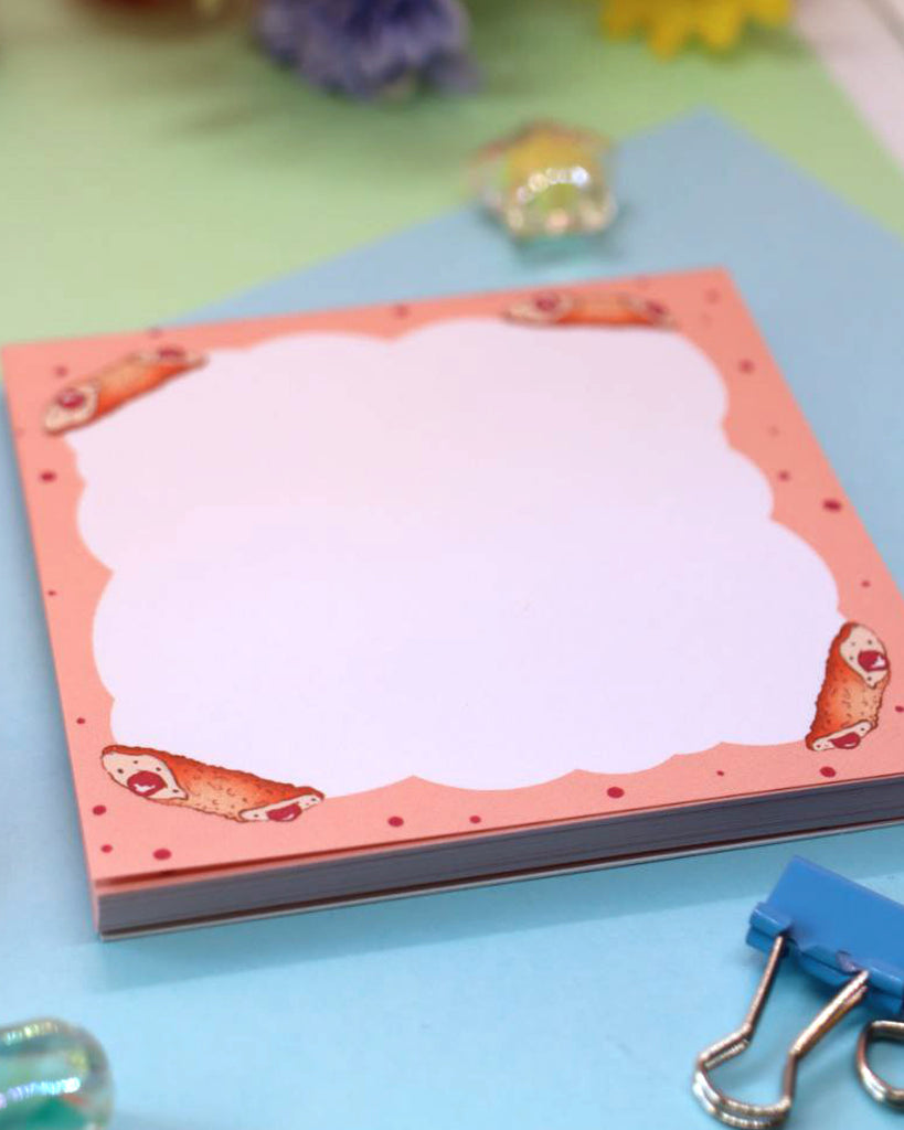 Un blocchetto da 50 fogli super kawaii per prendere appunti, scrivere liste o lasciare piccoli messaggi adorabili. Ogni pagina è decorata con deliziosi cannoli siciliani.