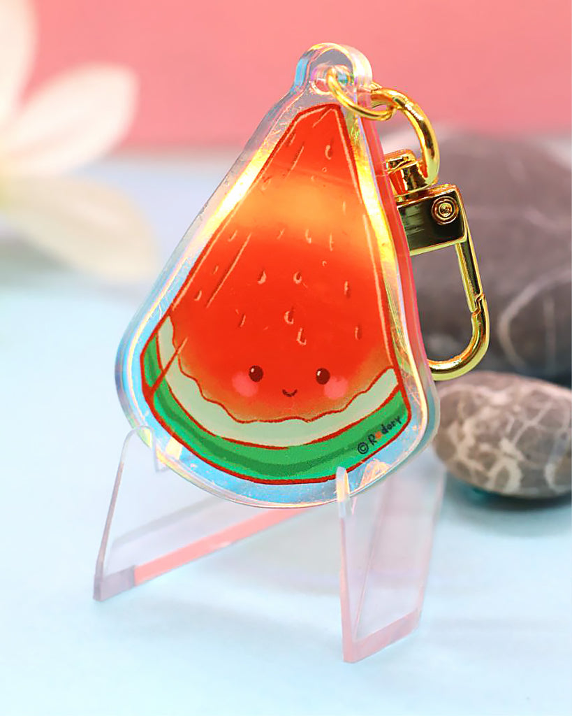 Le freschissime Angurie di Sicilia arrivano in formato portachiavi in acrilico per dare carattere non solo ai vostri mazzi di chiavi ma anche borse e zaini. Le trovate sia in acrilico trasparente che in effetto rainbow🌈